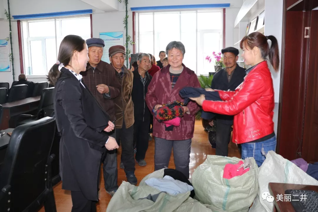(下图为捐助仪式后向贫困户发放捐赠衣物)